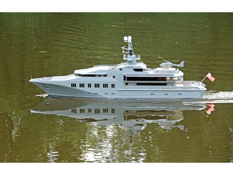 Alfreds nagelneues Superyacht-Modell SKAT bei der Jungfernfahrt